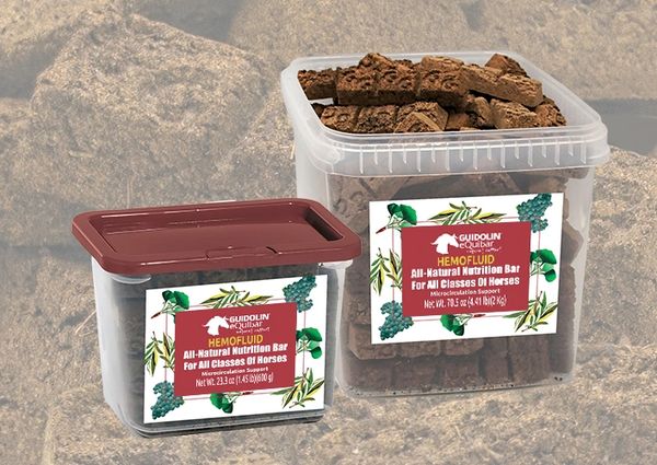 Equibar Hemofluid is a bar-shaped complementary feed for horses, to be administered on its own or together with meals, prepared using medicinal herbs with effective anti-inflammatory, antioxidant, blood fluidity and draining properties, which act on the functioning of the microcirculation with a natural invigorating, toning and anti-inflammatory action. Hemofluid should be integrated in the daily diet of fully active horses, as well as those at rest, such as elderly horses. Administered regularly, its balanced and completely natural formula guarantees gradual positive action on the animal’s microcirculatory system without placing strain on other organs, such as the liver.