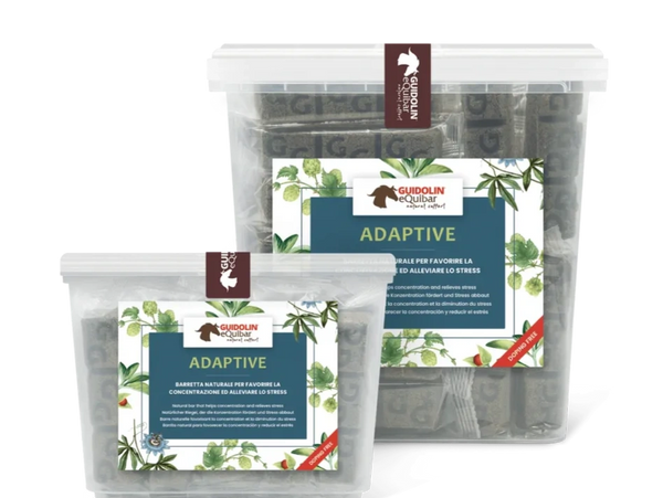 Equibar Adaptive is a complementary feed for horses, in the shape of a bar, formulated using medicinal herbs – Passionflower, Hop plant, Ashwagandha – that can help the horse in situations of anxiety, stress and restlessness, as well as promote psycho-physical well-being, concentration and attention levels. Given its entirely natural, plant-based composition, Equibar Adaptive can also be used in the event of gastrointestinal disorders.
